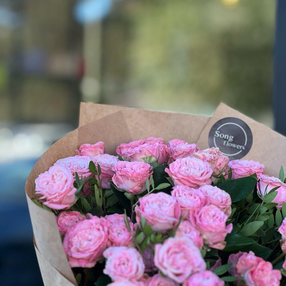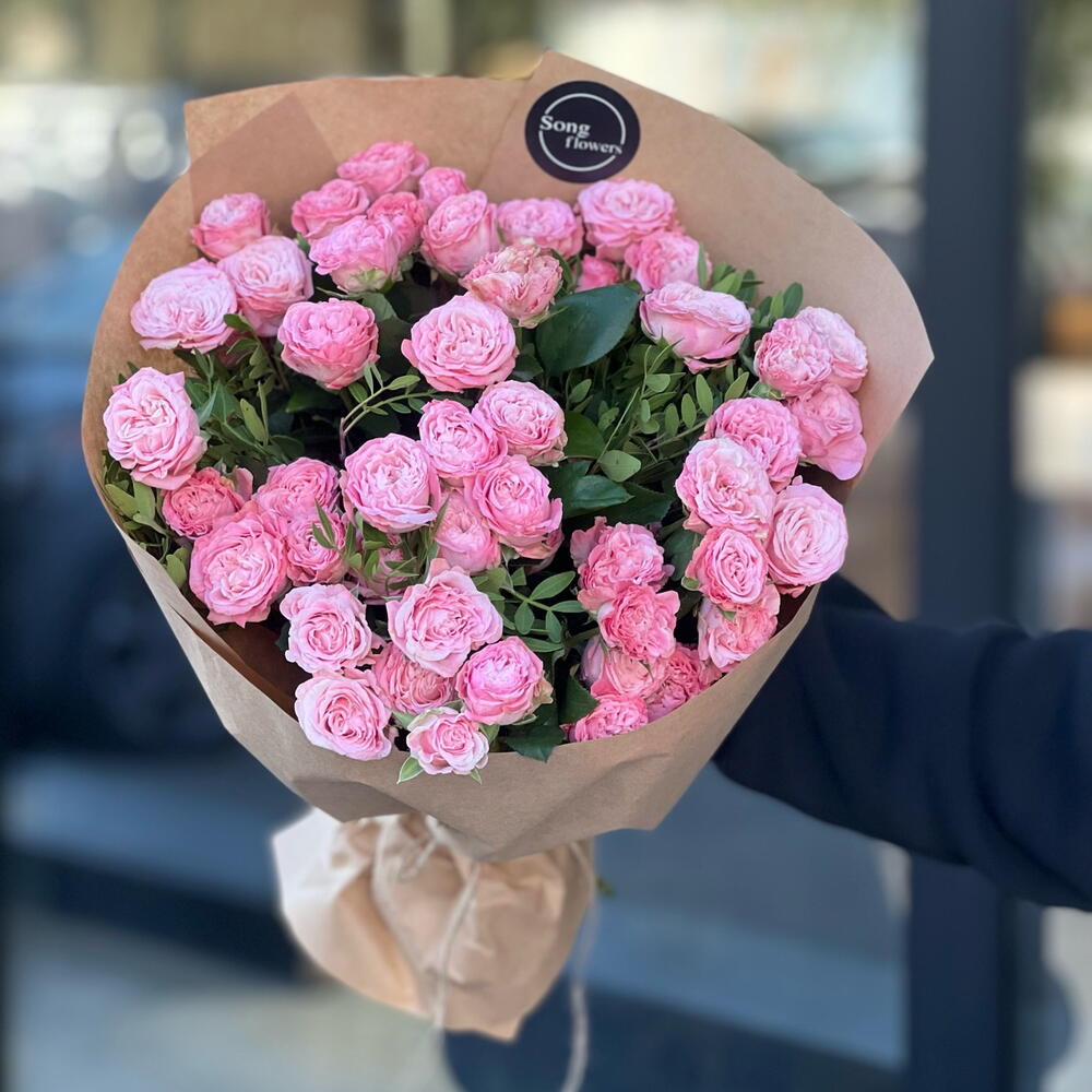 15 кустовых пионовидных роз сильва пинк. Букет 24 KimFlo