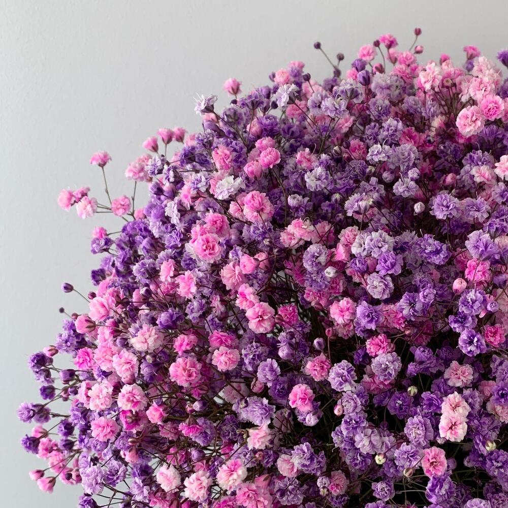 «Лавандовое созвездие» Букет из розы, гвоздики, статица и хлопка