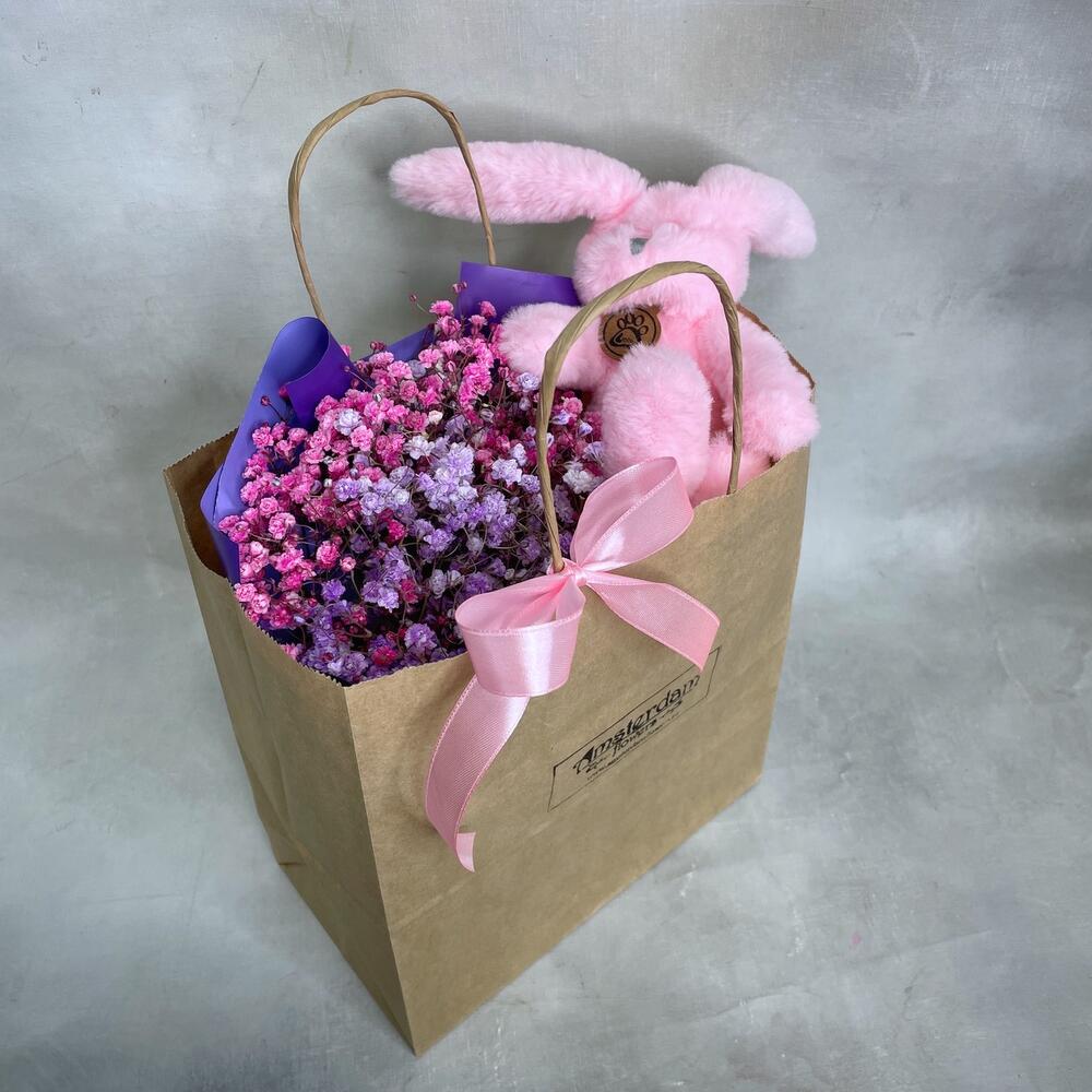 Гипсофила – 3 шт.Упаковка – 1 шт.игрушка зайчонок lapkin – 1 шт.Пакет крафт – 1 шт.