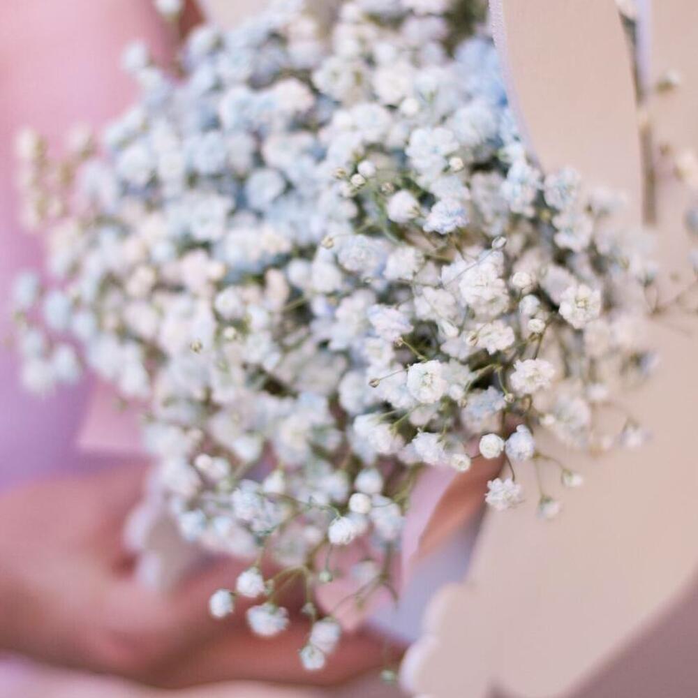 “Сиреневый туман” – композиция из гипсофилы в шляпной коробке