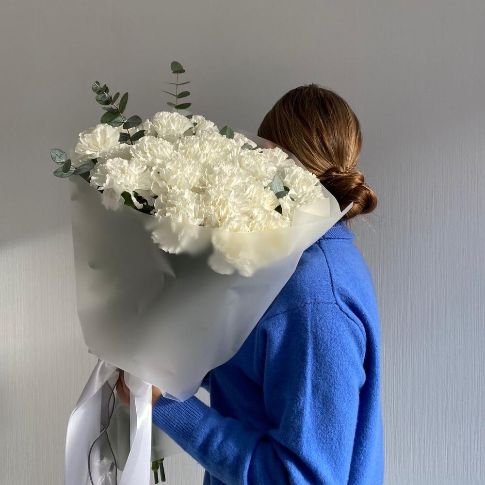 Букет из белых гвоздик и эвкалипт