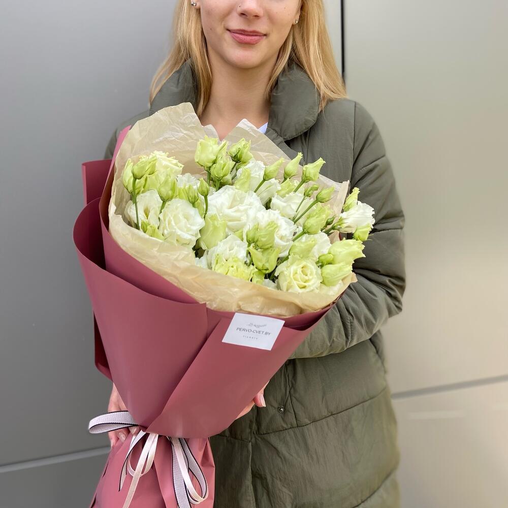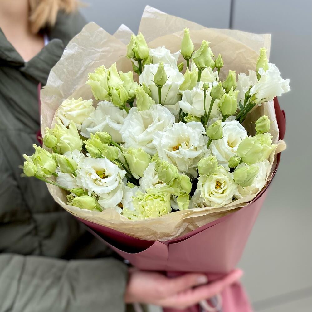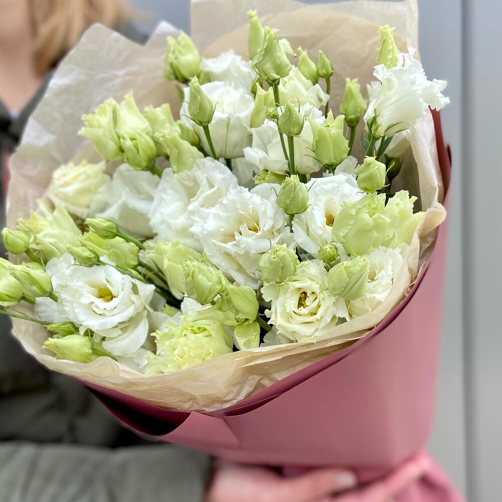 Простой и стильный букет из эустомы.