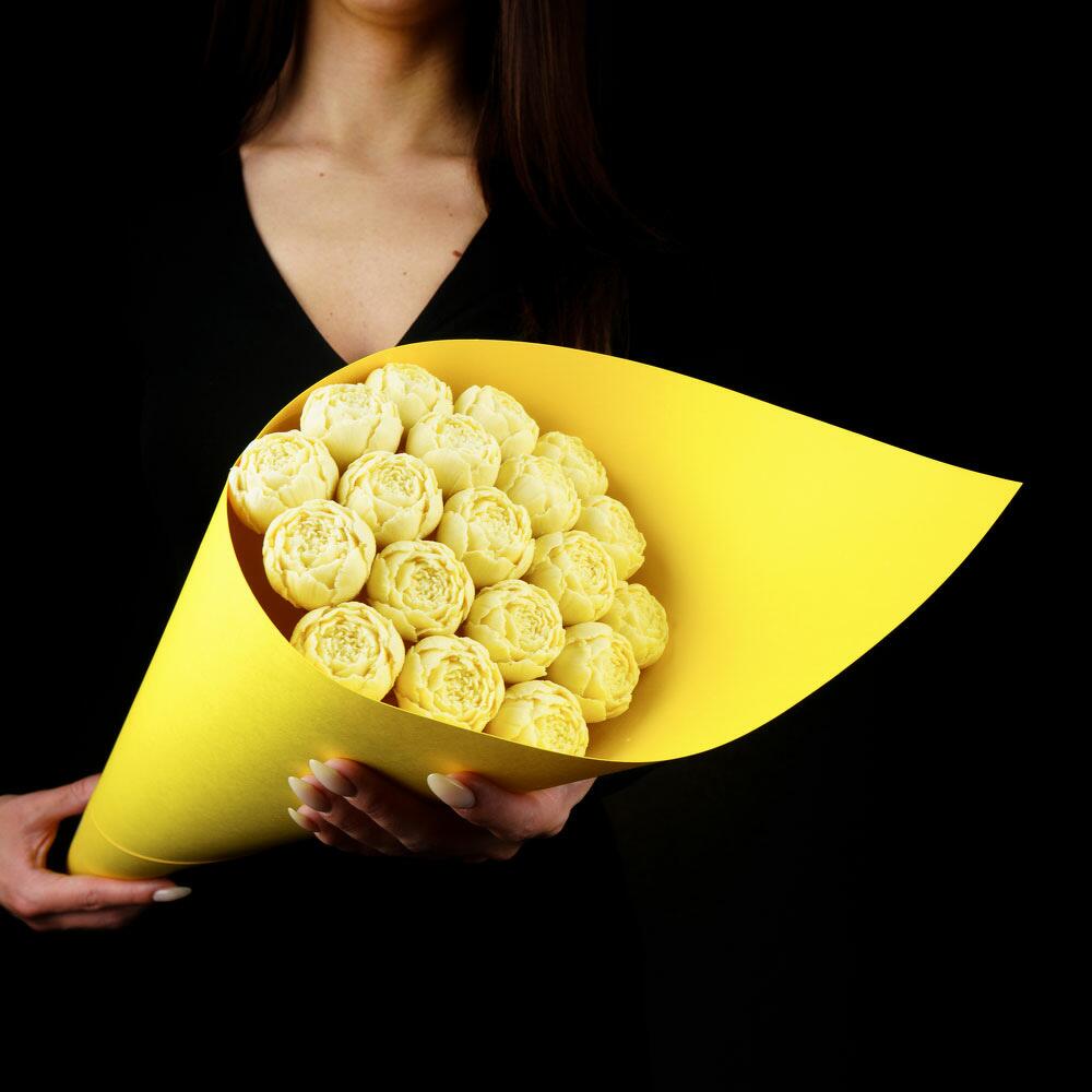 шоколадные пионы из бельгийского шоколада – 19 шт.Упаковка Кулек – 1 шт.Прозрачная пленка – 1 шт.