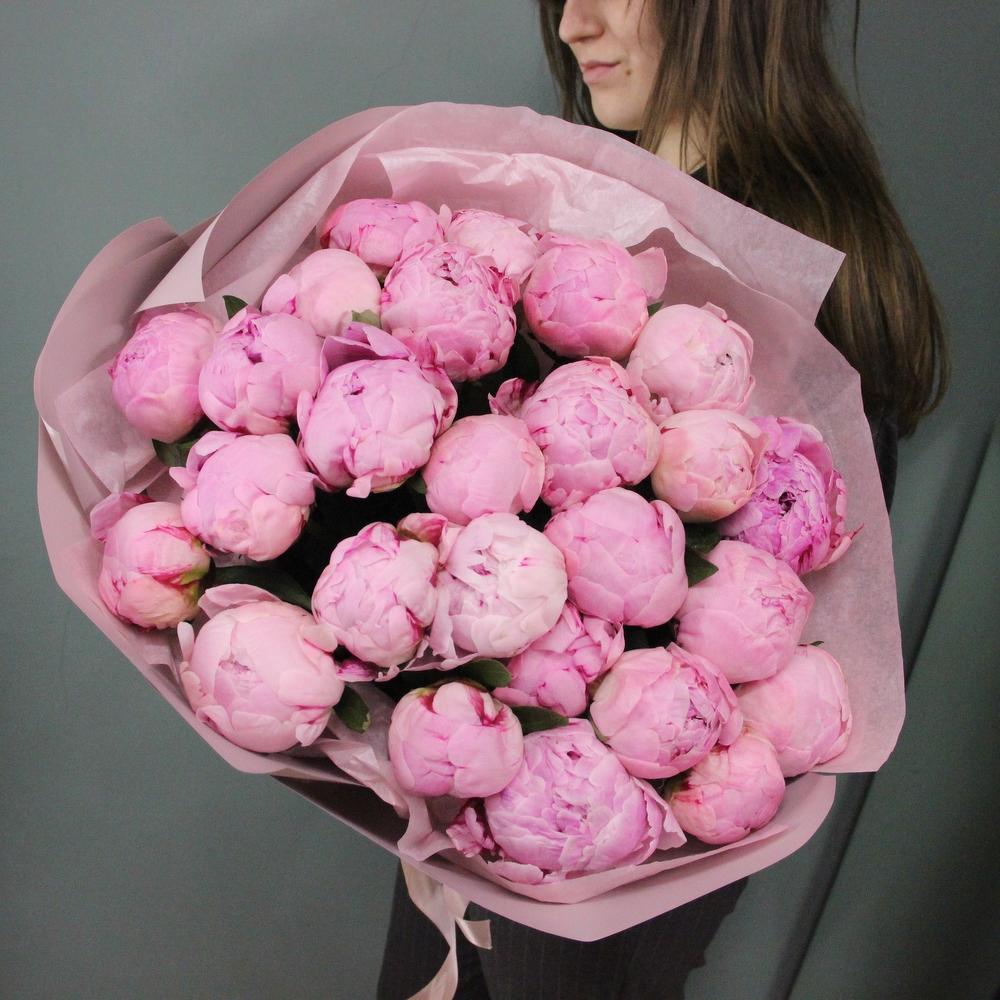 Букет из 25 пионов в лаконичной упаковке.Стильное цветочное решение для любого случая.