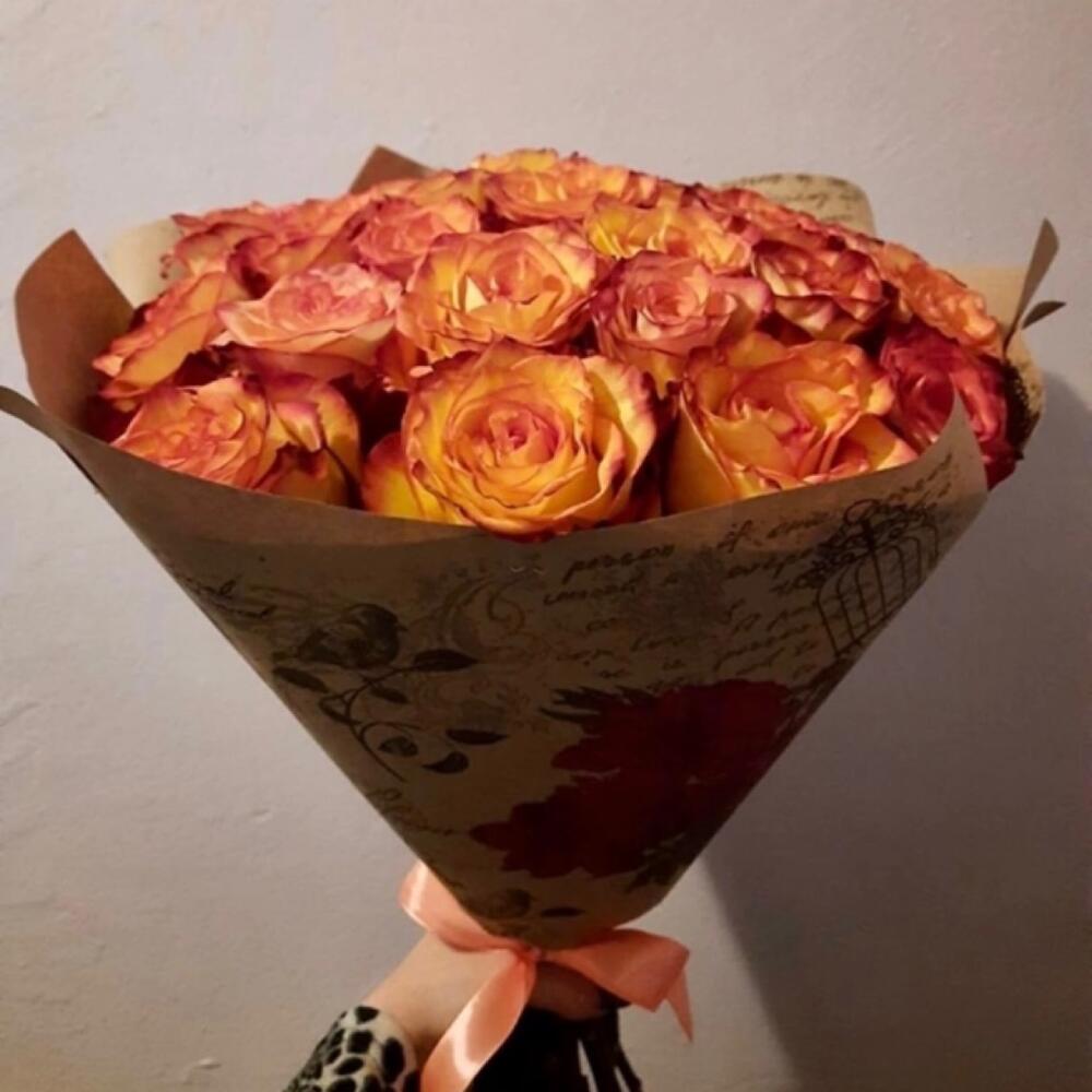 Букет 25 Роз «Огненный закат»
