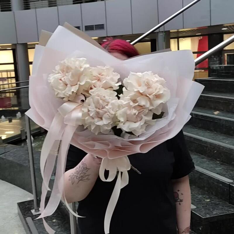 “Эвкалиптическая роскошь” гортензия и пионовидная кустовая роза
