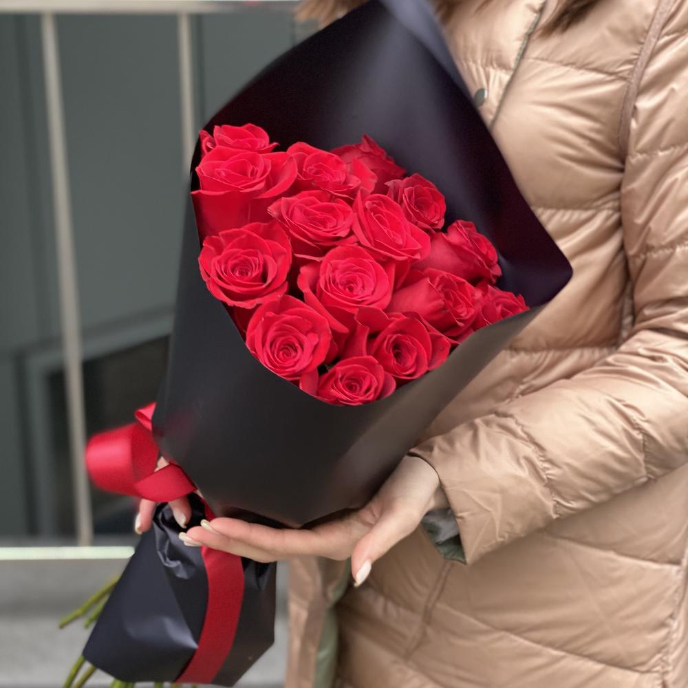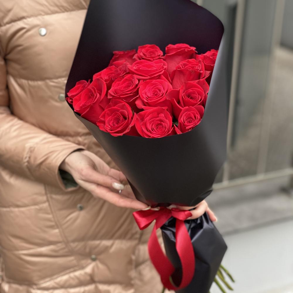 роза красная фридом – 15 шт. Оформление – 1 шт.