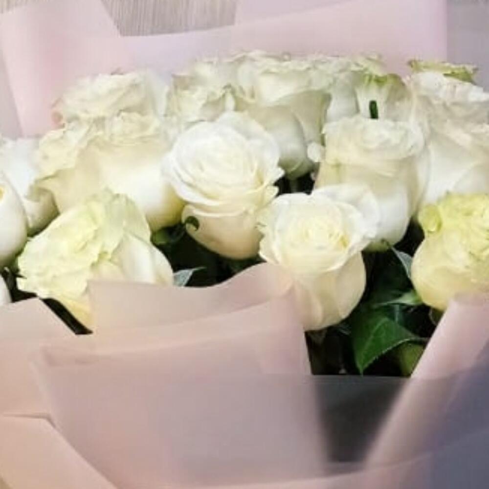 Метки: 25 роз, Белые розы, от 4000 до 5000 руб, Роза 70 см