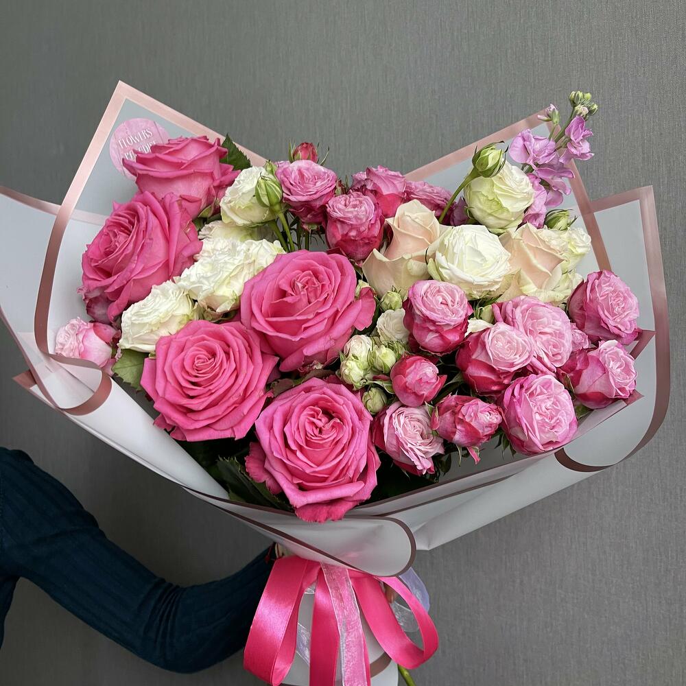 Букет микс из кустовой и одноголовой розы