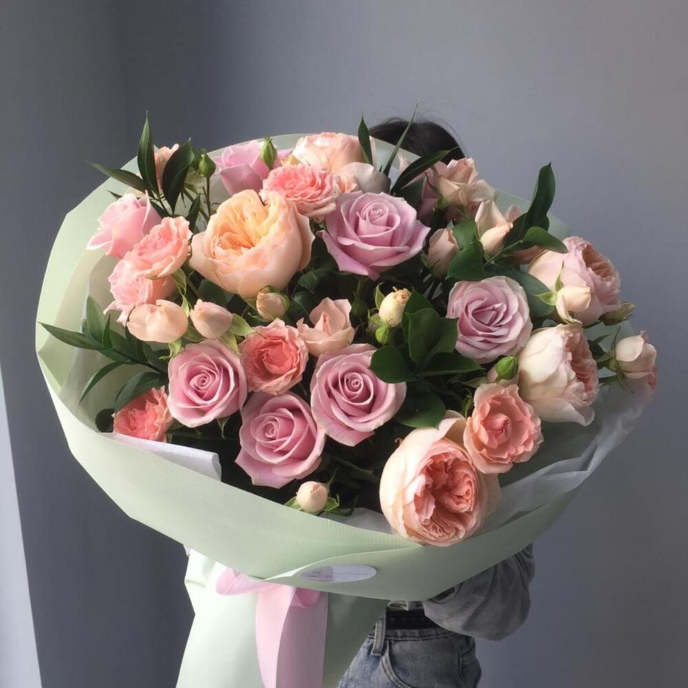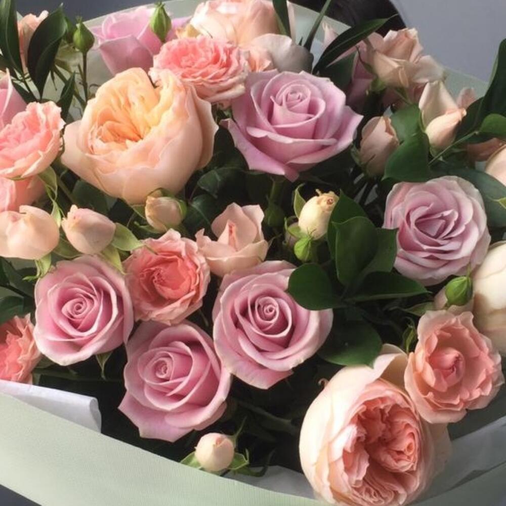 Гвоздики, Кустовые розы, Пионовидные розы, Розы