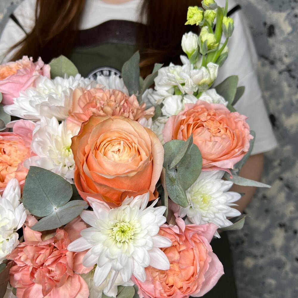 Категорий: Гвоздики, Кустовые розы, Пионовидные розы, Розы, Хризантемы