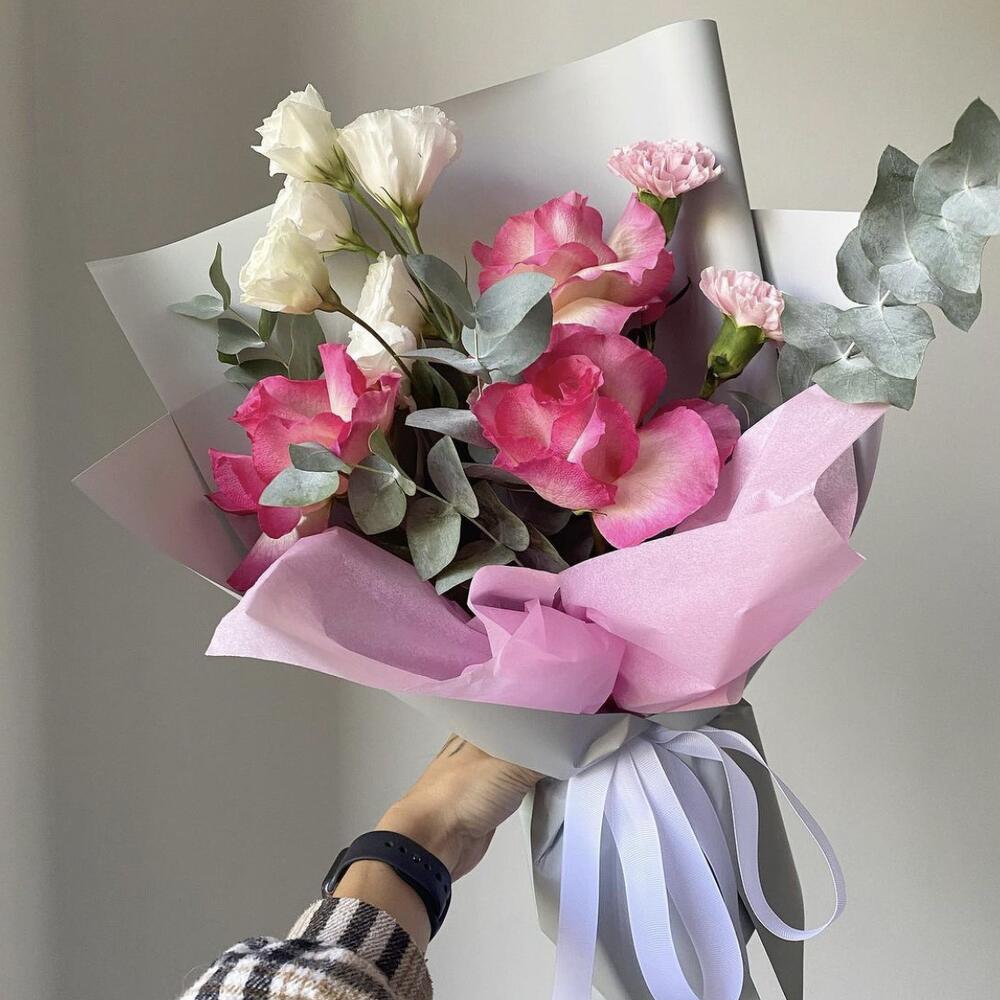 Альстромерии, Кустовые розы, Лизиантусы, Пионовидные розы, Розы, Ромашки