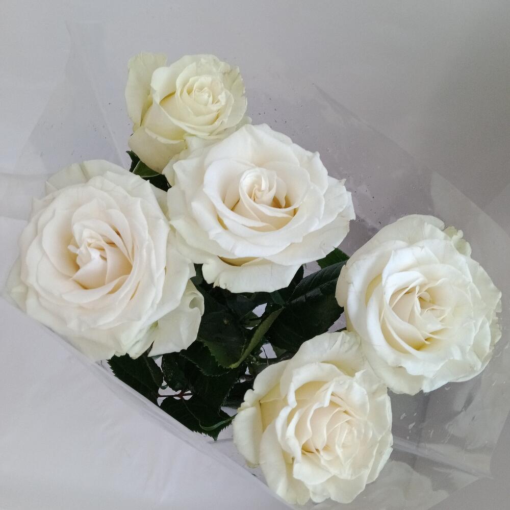 Пленка прозрачная – 1 шт.роза белая 70 см эквадор – 5 шт.