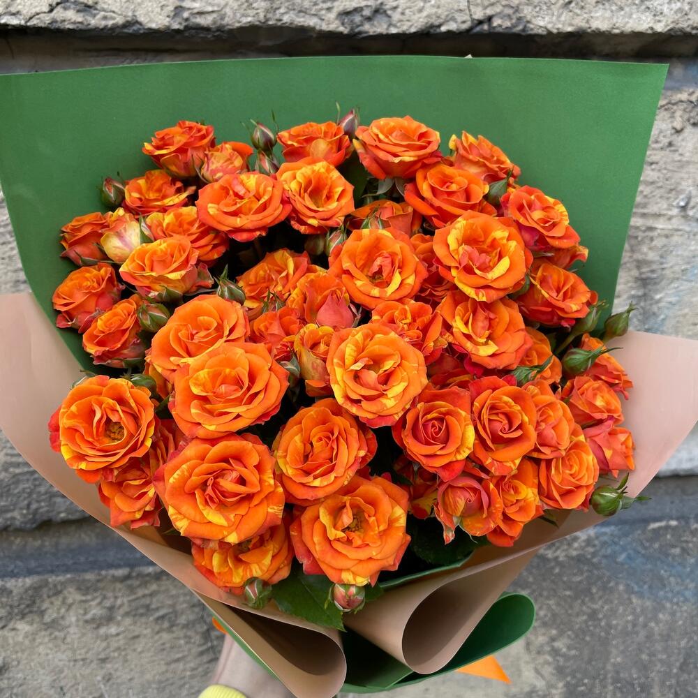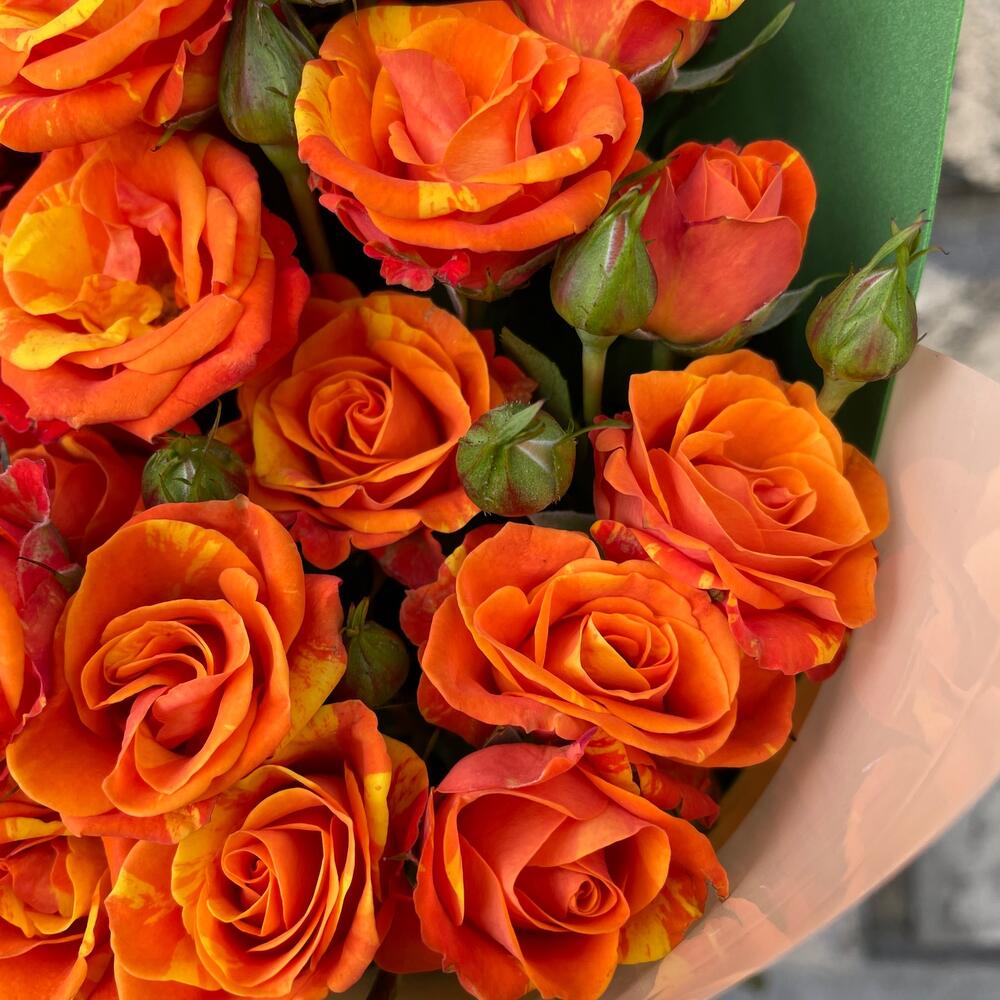 Роза кустовая – 9 шт.Фоамиран (упаковка) – 1 шт.Пленка дизайнерская – 1 шт.Лента атласная – 1 шт.