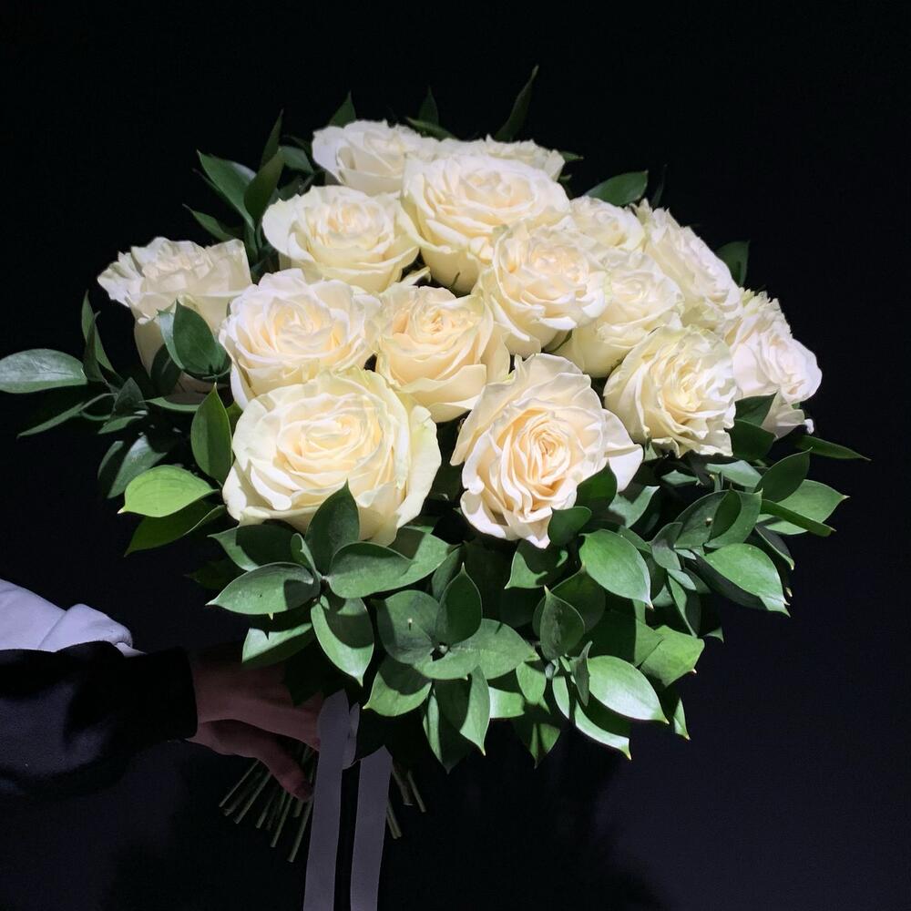 Рускус – 11 шт. розы – 15 шт.